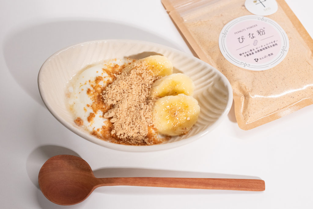 ぴな粉バナナヨーグルト 簡単、美味しい、ヘルシーが3拍子揃ったおすすめの食べ方です。 材料 (1人分) ぴな粉...大さじ1~2 ハチミツ...大さじ1 バナナ...1/2本 ヨーグルト...150g 作り方 (所要時間:5分) ①ヨーグルトと食べやすく切ったバナナを器に盛り付ける。 ②ぴな粉とハチミツを上からかけたら完成! ※少し水切りしてグリークヨーグルト風にしても美味しいです♪ 使用した商品はこちら! オンラインショップへ レシピ一覧に戻る 商品ごとのレシピ>> ぴな粉 煎り落花生 ピーナッツオイル ピーナッツペースト 楽花茶 生落花生「おおまさり」